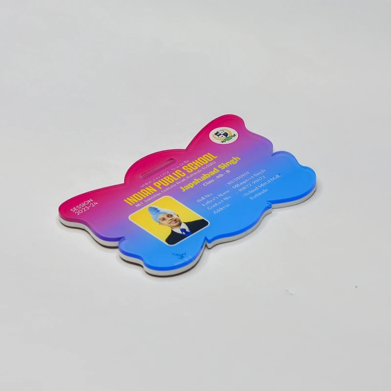 Our Any Shape Acrylic ID Card is a perfect solution for schools and organizations looking for high-quality, durable, and customizable ID cards. Made from strong acrylic material, these ID cards come with a smooth, polished finish. The cards are printed on one side, showcasing your desired design or logo. Each ID card comes with a 16MM lanyard for easy hanging and convenient use.